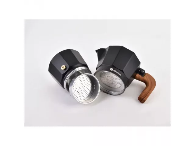 Kawiarka idealna do zaparzania sześiu filiżanek typu espresso. Kawiarka posiada sitko oddzielające fusy od kawy, zapewnia łatwe i szybkie przygotowanie kawy.