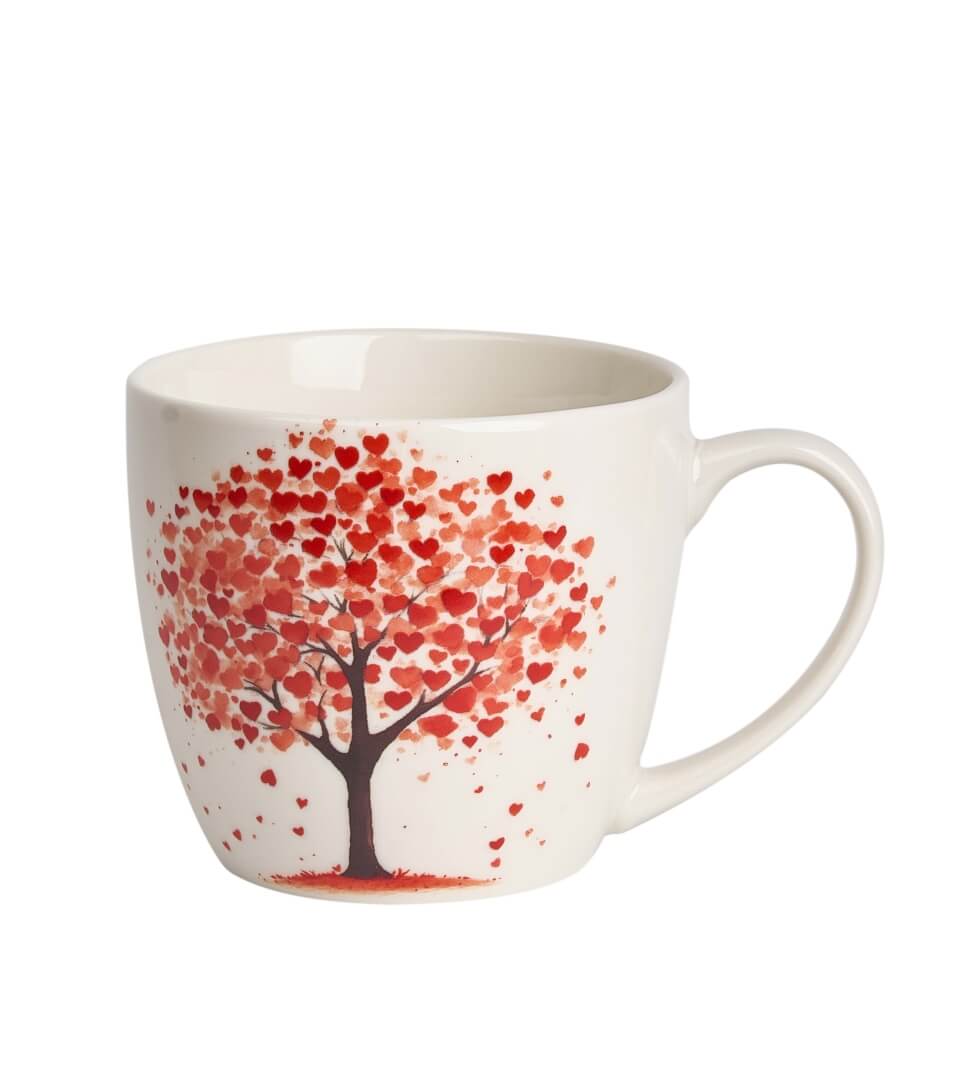 Kubek 460 ml w “koszyczku” DRZEWO wchodzący w skład serii SERCA, charakteryzuje się naturalnym kremowo-białym kolorem z delikatnym połyskiem oraz wyjątkową wytrzymałością i trwałością, zachowując lekkość i finezję.