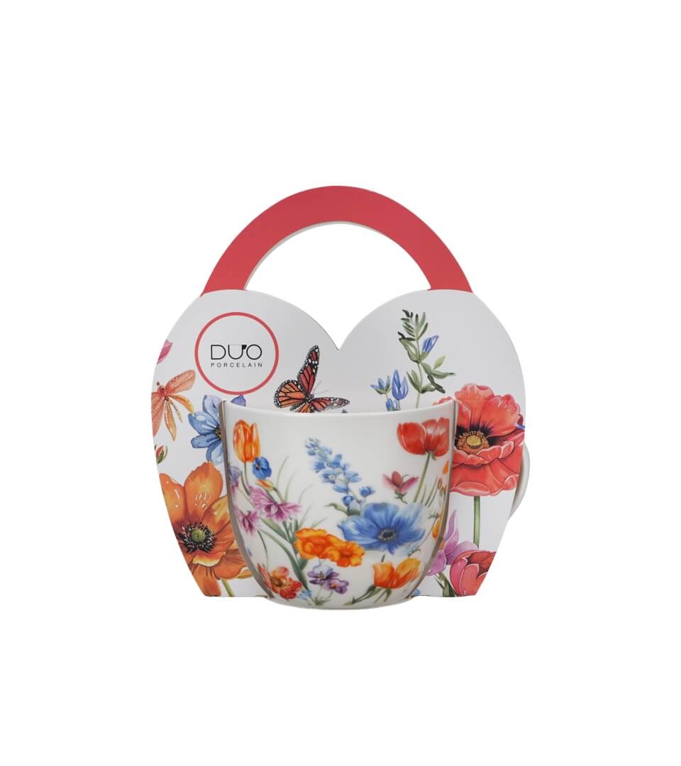 Kubek 460 ml w koszyczku SPRING wchodzący w skład linii Kwiaty Classic wykonany z porcelany New Bone China, która charakteryzuje się naturalnym kremowo-białym kolorem z delikatnym połyskiem oraz wyjątkową wytrzymałością i trwałością.