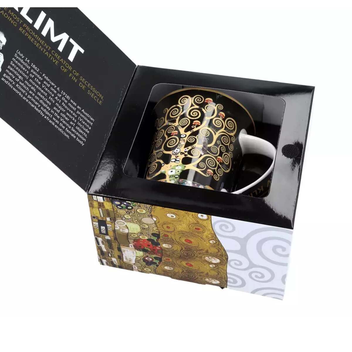 Elegancki kubek, z motywem twórczości znanego malarza Gustava Klimta. Wysoka jakość pozwala na codzienne użytkowanie przez długi czas. Z tak pięknej filiżanki, przyjemność picia kawy lub herbaty wzrasta. Idealny na prezent.