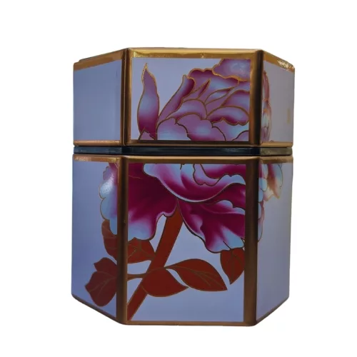 Ta puszka przedstawia szczegółowy wystrój wyjątkowego kwiatu. Ilustrowany projekt został stworzony z dużą dbałością o szczegóły. Piękny kształt puszki w połączeniu z białą powierzchnią i różowego dekoru kwiatowego. Przedmiot ten idealnie nadaje się do przechowywania ok 100g herbaty.