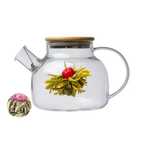 Kwitnąca herbata to specjalnie uformowane kulki suszonych liści herbacianych, które zawierają w swoim wnętrzu różne rodzaje kwiatów, takie jak jaśmin, chryzantema, czy hibiskus. Po zalaniu gorącą wodą, kulki te rozwijają się, tworząc piękne, kwitnące kompozycje w filiżance lub dzbanku.