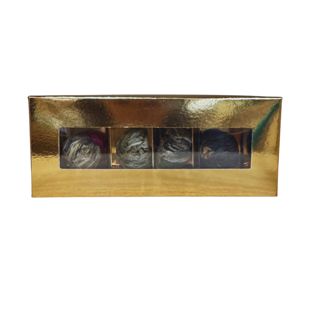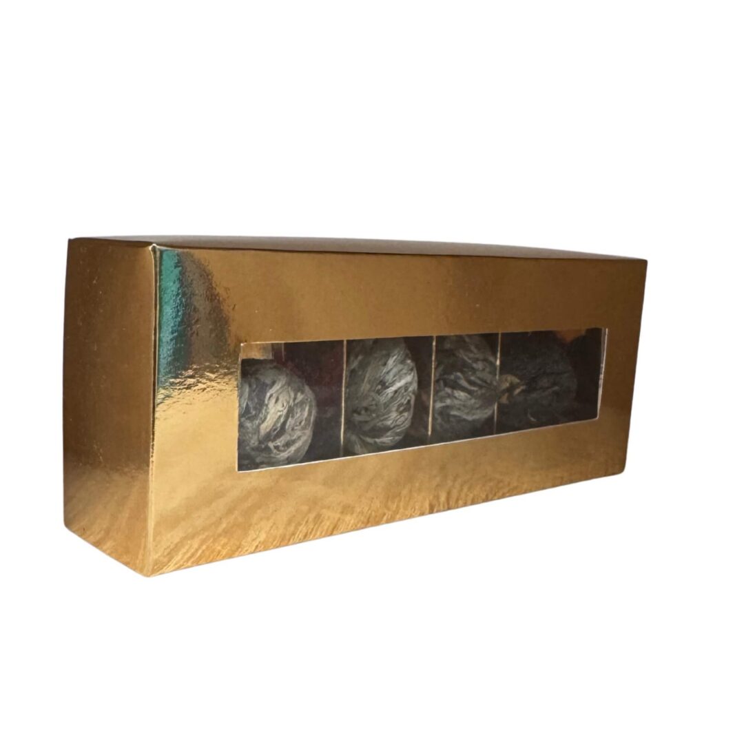 1 szt. Herbata kwitnąca Gold Ingot Składniki: herbaty zielona i biała, kwiaty jaśminu i wiecznika kulistego
