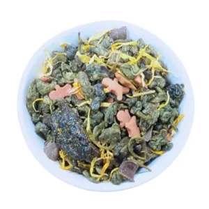 Nasze herbaty pakujemy w czarne torebki typu Doypack, które posiadają stabilny spód. Torebka zgrzewana od góry oraz posiada strunę. Z tyłu znajduje się etykieta ze składem i sposobem parzenia herbaty.