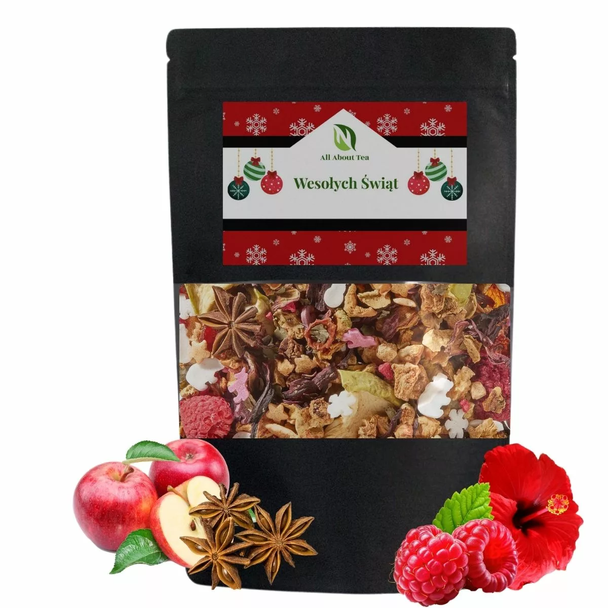 O co prosi mały pomocnik Świętego Mikołaja w te święta? O słodki świąteczny poncz z pieczonym jabłkiem z dżemem malinowym. To dzieło nie pozostawia nic do życzenia: słodkie misie polarne, bałwanki i kolorowe jednorożce leżą pod choinką. Owocowo-radosny smak tej herbaty jest idealny dla dużych i małych świątecznych elfów.