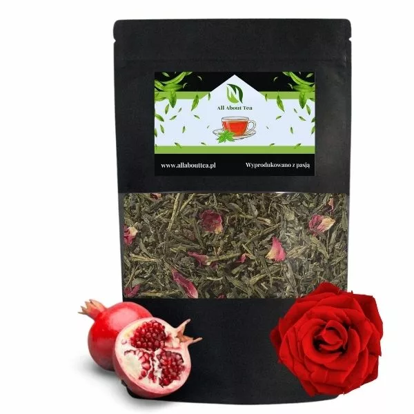 Herbata ta powstała na bazie chińskiej Senchy z dodatkiem delikatnych płatków róży i przewodnim dodatkiem egzotycznego granatu. Dodatek płatków róży daje niesamowity aromat herbacie, a także subtelnie uwydatnia smak granatu. Smaczne połączenie sprawi, że zachwycisz się chwilą odpoczynku przy zielonej herbacie, umilisz sobie czas i poprawisz nastrój doceniając delikatny aromat tej herbaty.