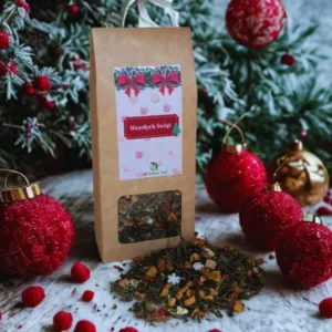 Ta świąteczna mieszanka zielonej herbaty urzeka owocowym, aksamitnym smakiem malin, świeżej śmietanki i delikatnego karmelu – miękkim, pełnym i po prostu niebiańskim. Chrupiący jogurt lśni niczym świeżo spadły śnieg, a kryształki lodu w lukrze nadają filiżance zimową atmosferę. Ta herbata smakuje jak przytulne wieczory przy kominku, pod ulubionym kocem i w ciszy zimowej magii.