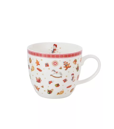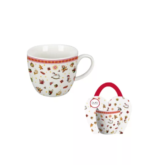Kubek 460 ml “w koszyczku” CHRISTMAS GIFTS wchodzący w skład serii Świątecznej, charakteryzuje się naturalnym kremowo-białym kolorem z delikatnym połyskiem oraz wyjątkową wytrzymałością i trwałością, zachowując lekkość i finezję.