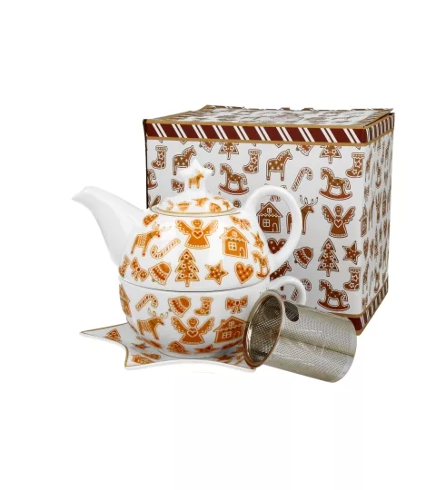 Filiżanka z dzbankiem, spodkiem i zaparzaczem GINGERBREAD