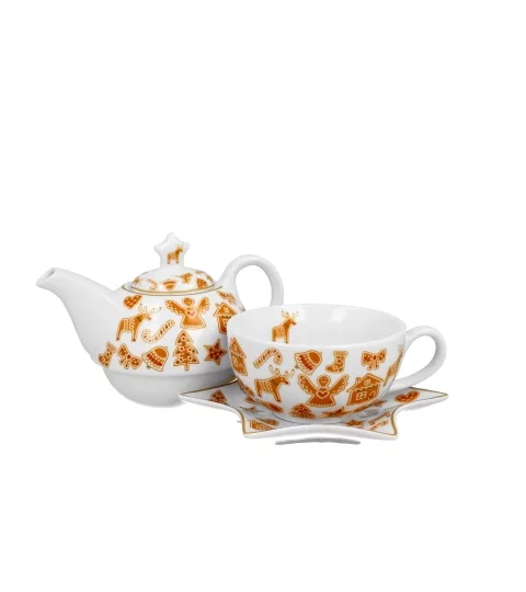 Zestaw dodatkowo jest wyposażony w metalowy filtr idealny do zaparzania ulubionej herbaty czy aromatycznych ziół. Dodatkowego uroku dodają świąteczne akcenty – spodek w kształcie gwiazdy oraz taki sam uchwyt pokrywki.
