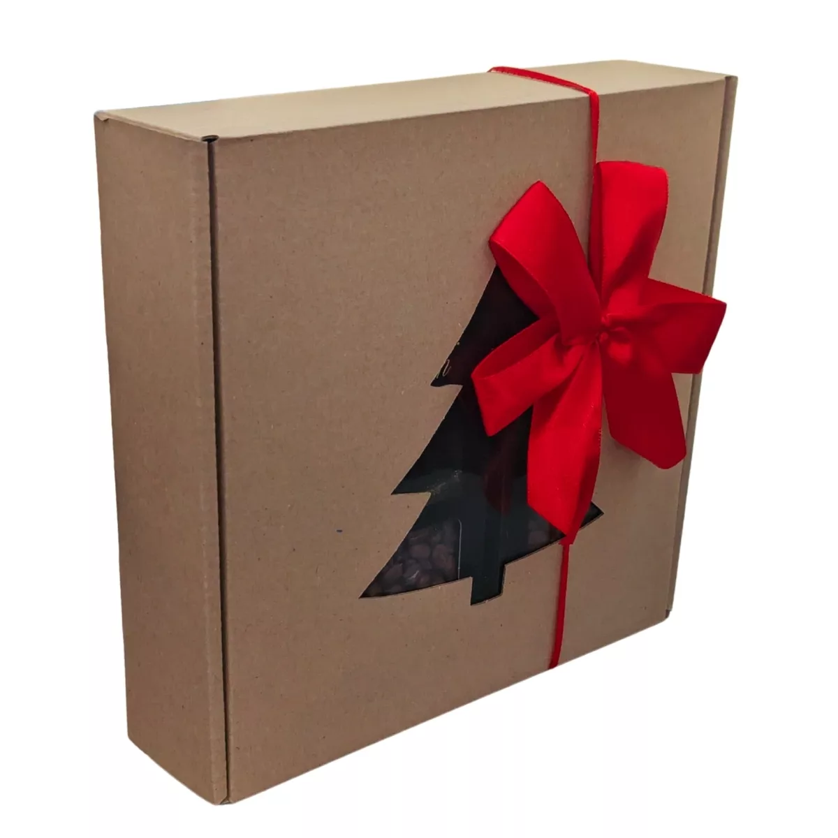 - Eko pudełko z okienkiem w kształcie choinki, sianko, wstążka (kolor wstążki wybierany losowo)