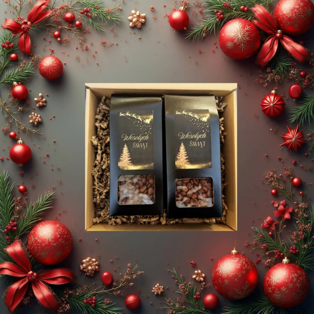 Wyjątkowy zestaw prezentowy składający się z aromatycznych kaw, spakowanych w eko pudełko ze wstążka. Idealny prezent na Mikołajki lub Święta. To doskonały wybór dla miłośników tego aromatycznego napoju, którzy pragną odkrywać różnorodność smaków i aromatów. Każda kawa w zestawie została starannie wyselekcjonowana, aby zaspokoić nawet najbardziej wymagające podniebienia.