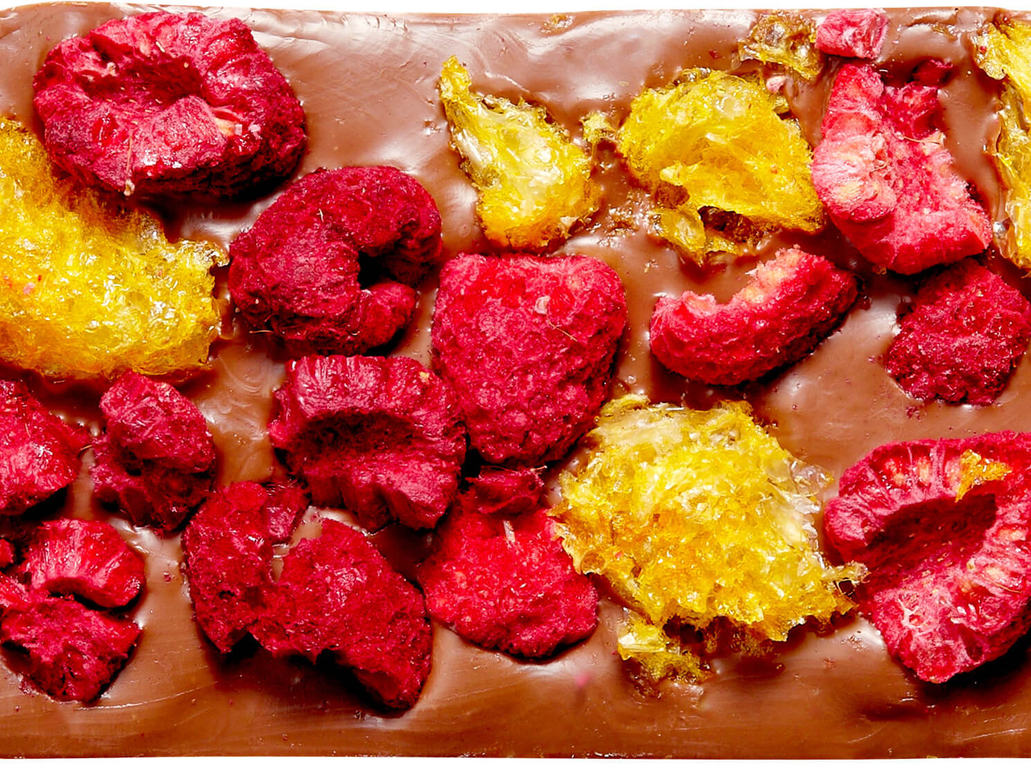 Czekolada mleczna bez dodatku cukru z owocami liofilizowanymi (mandarynka, malina). Czekolada zawiera substancję słodzącą oraz naturalnie występujące cukry. Składniki: czekolada mleczna (substancja słodząca: maltitol, tłuszcz kakaowy, mleko pełne w proszku, miazga kakaowa, emulgator: lecytyna sojowa, naturalny aromat wanilinowy), mandarynka liofilizowana (2,8%), malina liofilizowana (2,8%). Masa kakaowa minimum 35,4%. Spożycie w nadmiernych ilościach może mieć efekt przeczyszczający.