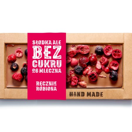 Mleczna czekolada bez dodatku cukru – żurawina, czarna porzeczka